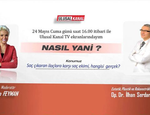 24 Mayıs Cuma saat 16.00’da Ulusal Kanal – Nasıl Yani Programında GÜLGÜN FEYMAN’ın canlı yayın konuğuyum. Konumuz: “Saç çıkaran ilaçlara karşı saç ekimi, hangisi gerçek?