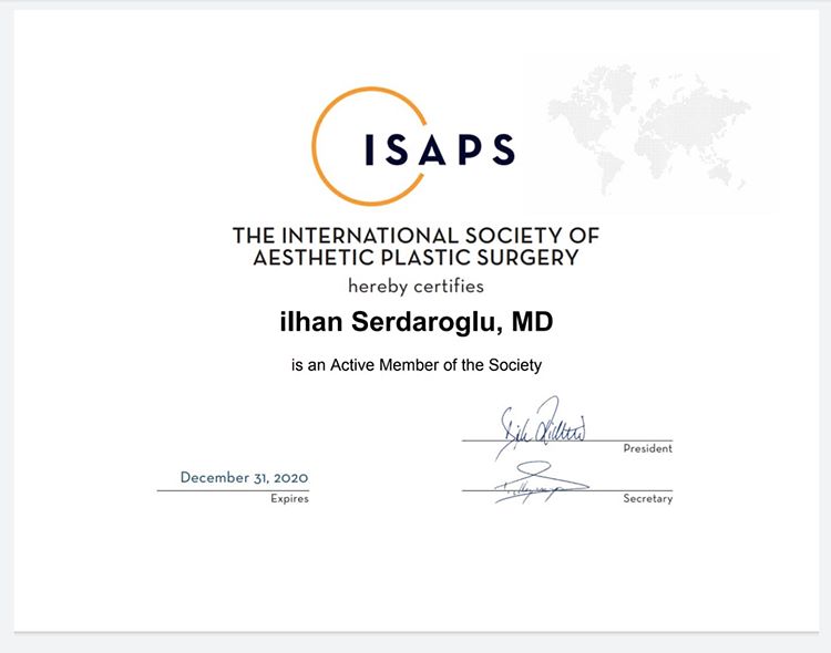 ISAPS (Uluslararası Estetik Plastik Cerrahi Derneği) üyesi olmaktan gurur duyuyorum. Bu birliktelik bana dünyadaki büyük plastik cerrahi ailenin parçası olduğumu hatırlatıyor.